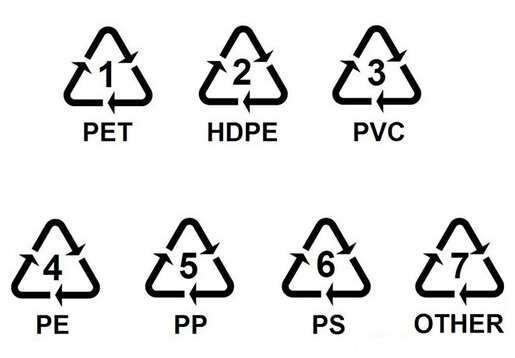 三角符號(hào)“1號(hào)” 材質(zhì):PET,常見(jiàn)的是礦泉水瓶和碳酸飲料瓶